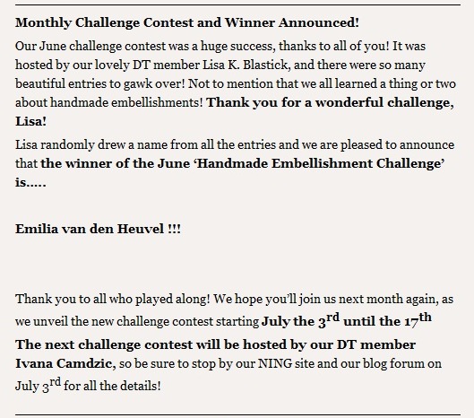 i also entered the june handmade embellishment challenge at scrap that and guess what - they drew my name as well:-)